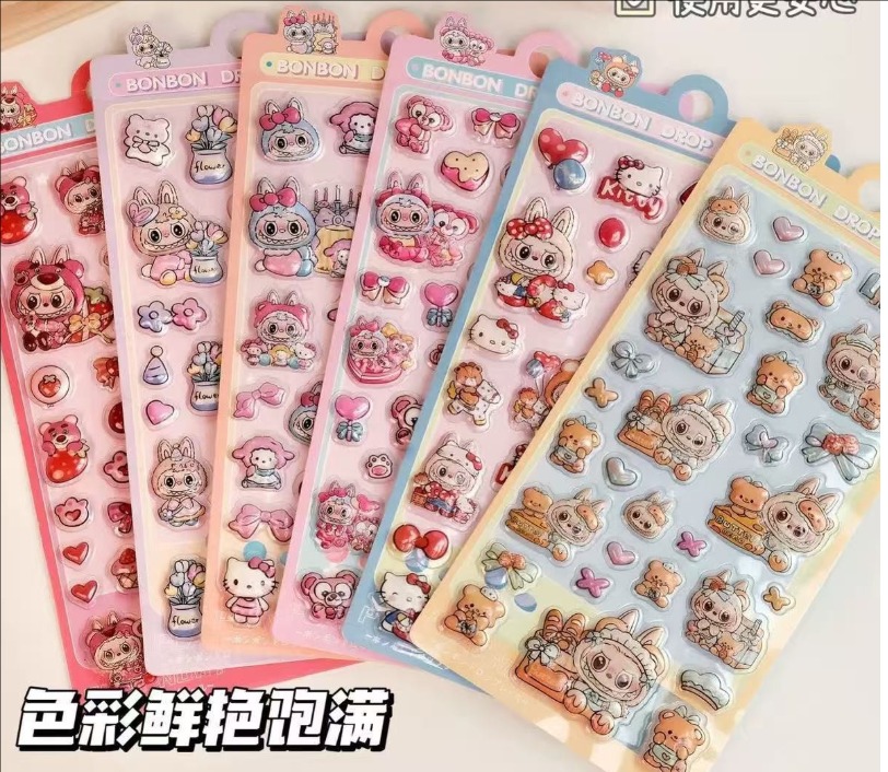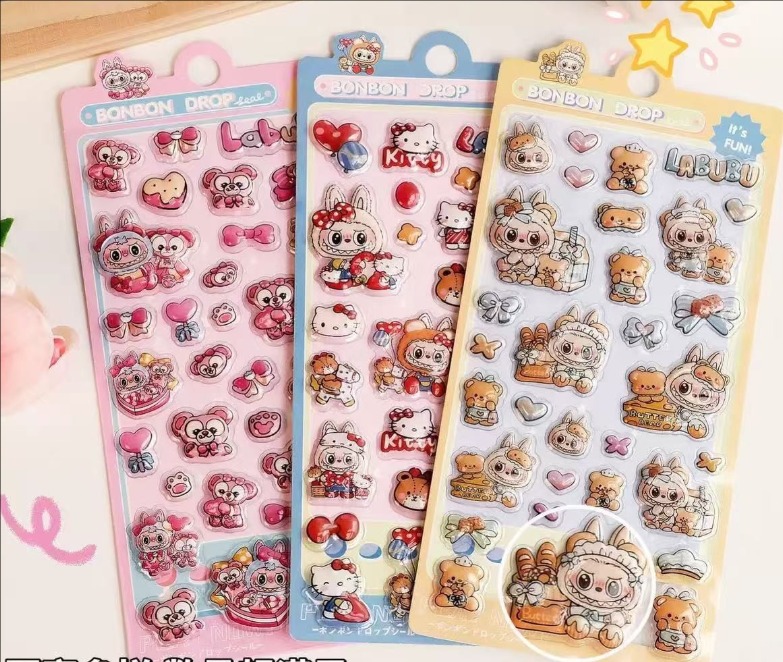 ラブブ(LABUBU) 3D立体エンボスシール|ぷっくり実心|可愛いキャラクター キッズ用 手帳デコステッカー