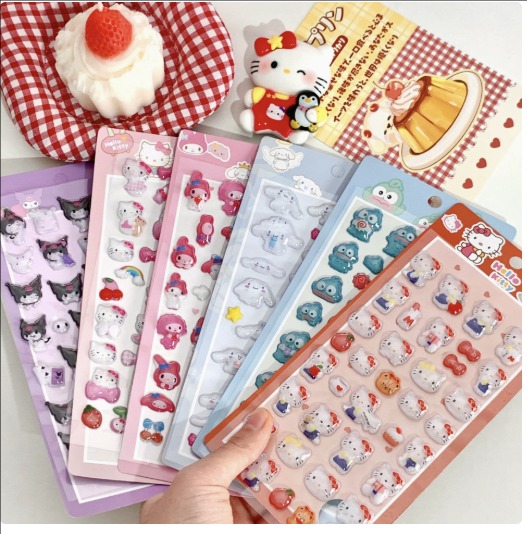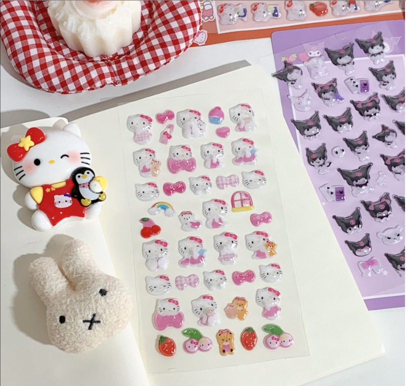 ハローキティ 3D立体クリスタルステッカー|かわいい浮き彫りデザイン スマホケース・タブレット装飾用 DIY 手帳デコ シール
