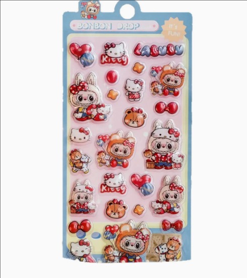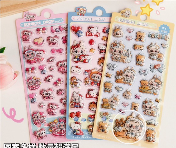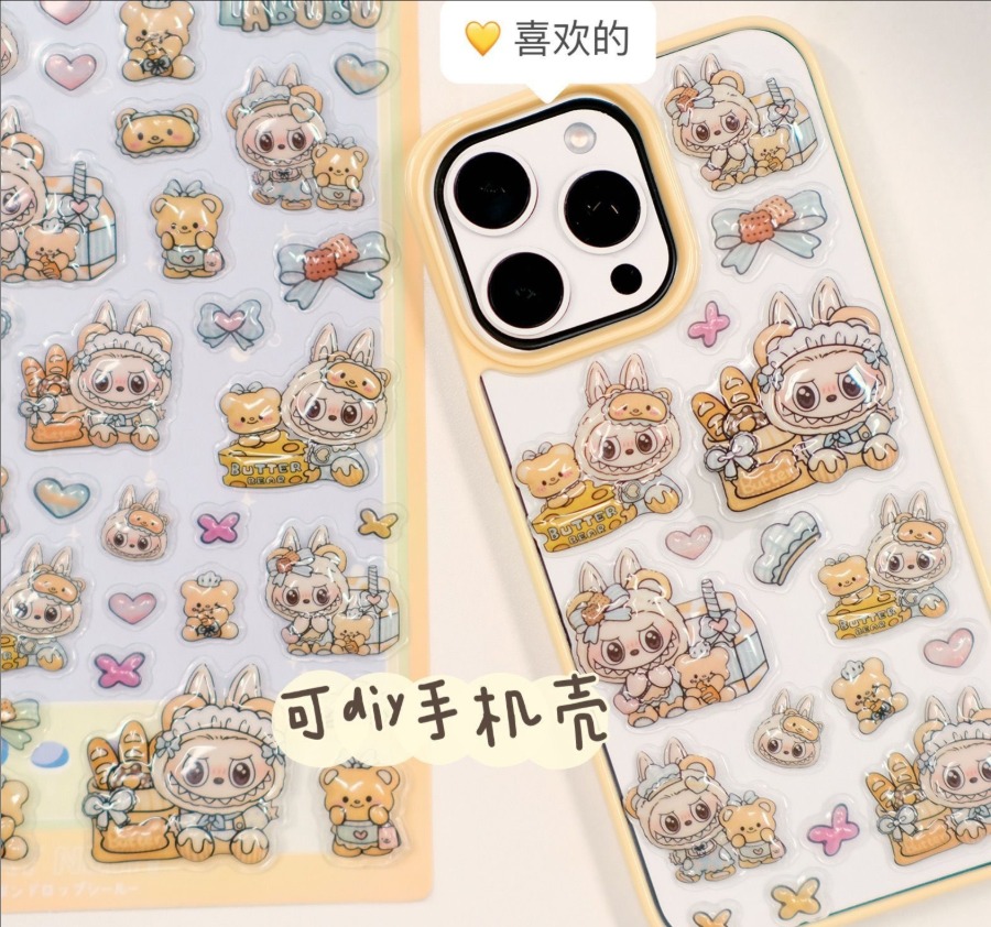 LABUBU 3D立体クリスタルステッカー|かわいい浮き彫りデザイン スマホケース・タブレット装飾用 DIY 手帳デコ シール