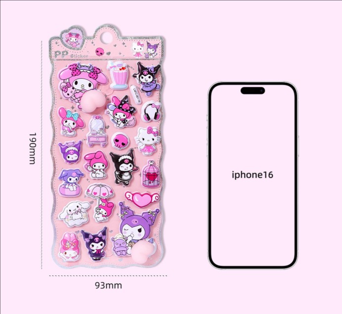 サンリオ ぷにぷにおしりシール 3D立体ステッカー|スクイーズ風 かわいいデコ素材 女の子向け スマホケース装飾 解圧おもちゃ
