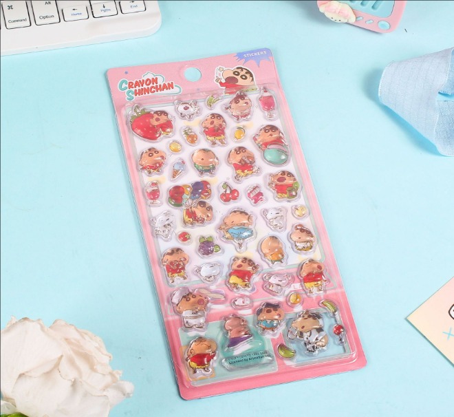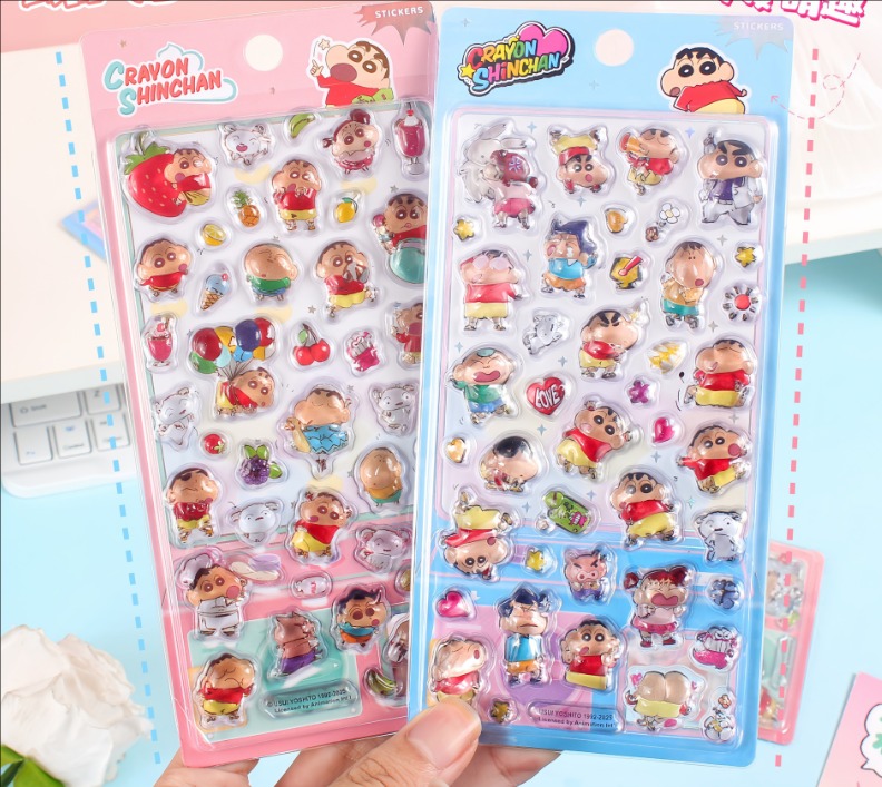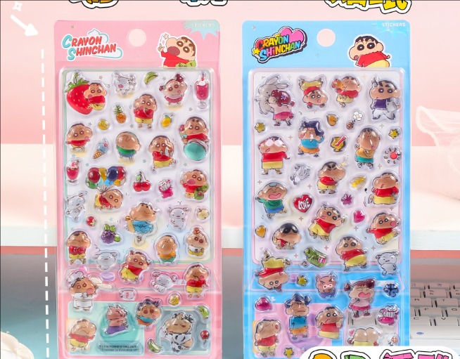 クレヨンしんちゃん 3D立体ステッカー 透明クリスタル風 浮き彫りシール カートゥーンデザイン 子供向け デコレーションシール スマホケース用 防水 耐久 キャラクター装飾