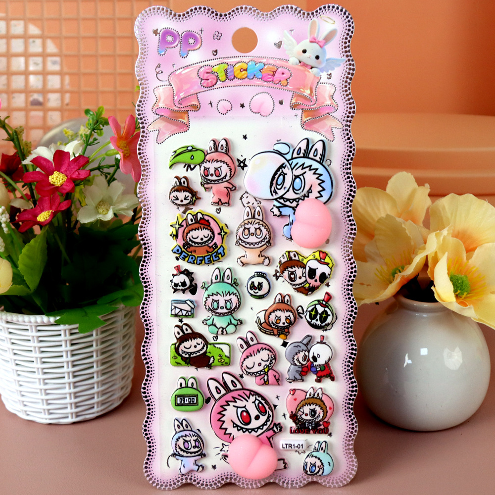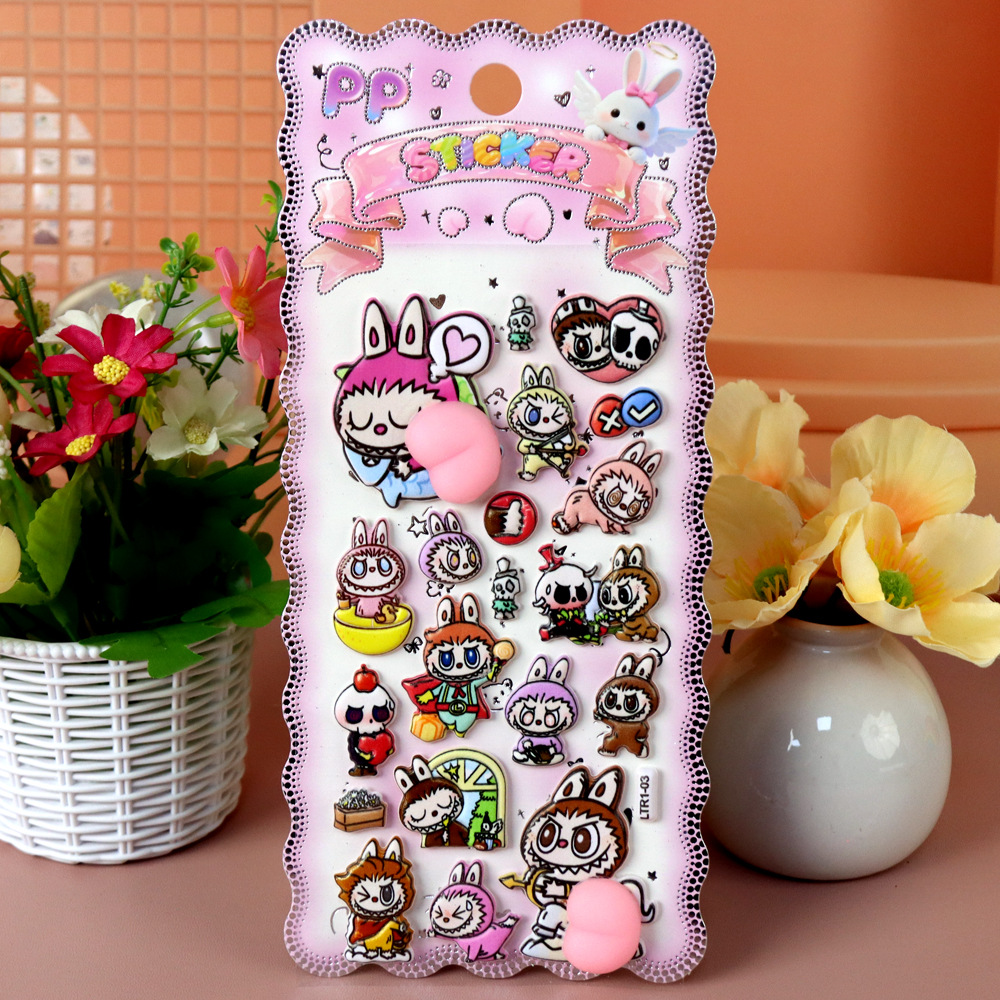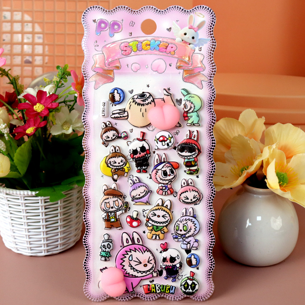 新作 Labubuお尻シール 手帳用貼り付け 立体 泡ステッカー 子供 DIY用 貼り付け 手芸用品 贈り物 ぶくぶく