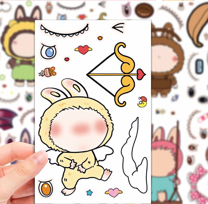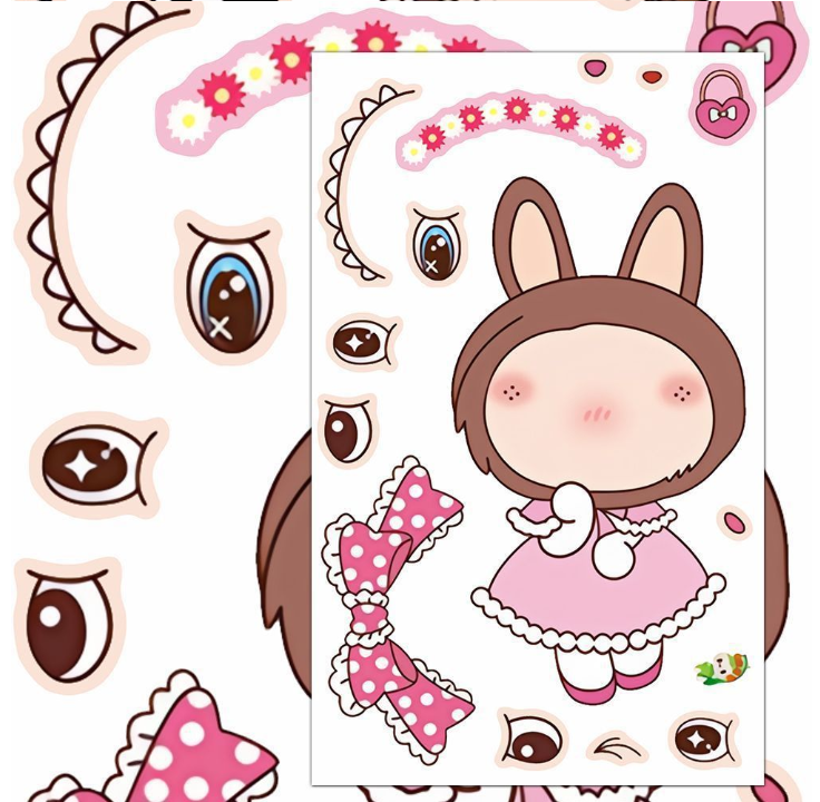 大人気!着せ替えシール 子ども向け 学生用 創意・知育 おもしろ キャラクター 貼って遊べる 自己粘着 手作りシール