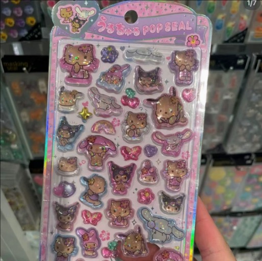 サンリオ ハローキティ&シナモロール 3D立体クリスタルシール|水晶風 ぷっくり実心|DIY カートゥーン デコステッカー
