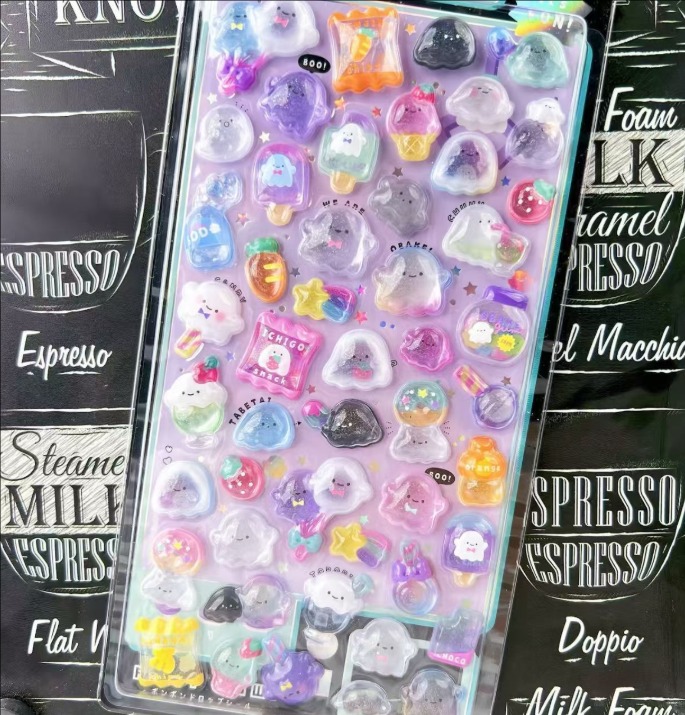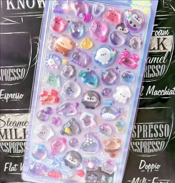 カートゥーン 3D立体デコステッカー|水晶風 キラキラ ダイヤモンド調 子供用 可愛い 浮き彫りシール 女の子向け