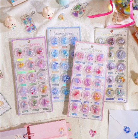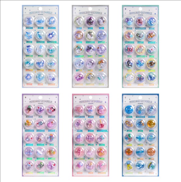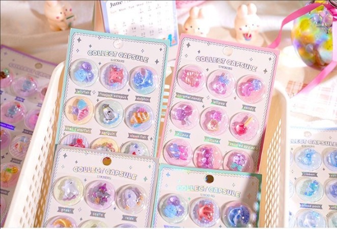 3Dカプセル宇宙船 立体クリスタルシール|浮き彫りエンボス 創意図鑑風 子供向け 知育・工作 ご褒美ステッカー スマホ装飾